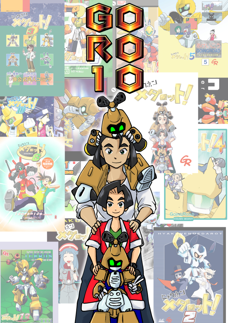表紙… 自分の10年間の同人活動と言えばやっぱりこのヒャクメダシリーズ。全部収録するとそれだけで15P増えてしまうので 今回はここに掲載です。中央のヒカル達はヒャクメダ1のセルフパロ。奥付で比較してるのでゼヒみてやってください…。 ヒャクメダ10 11表紙… いくつかあるヒャクメダの中から「それっぽく出来た」お気に入りの2枚を持ってこさせていただきました。 タイトルその他も含めてひとつの形なので、それっぽい元ネタと見比べていただけると嬉しいです。 メダロット20周年記念イラスト… メダロット ヒカル編連載から20周年の日に公開したものです。 ヒカル編ってゲーム版は完全に未知の作品で、なんとなく不穏な空気が漂ってたり、結局ヒカル以外は戦ってくれなかったり するところがあるので、ヒカルと相棒以外は敵に回りそうな感じに描きました。 イベント「魔の十日間」イメージイラスト… ヒカル編で暴走事件が起きた時期が現実にも来たのを記念して主催したオンラインイベントのイメージイラストです。 後ろのメダロット達はツイッターで色々な人の好きメダを聞いて全部詰め込んでるので、ヒカル編にいないメダも多数います。 あなたは全部わかるかな!? メダカードゲストイラスト… サムライ 悪ふざけの産物ですね。うふふ。 マリンキラー ちょっと思い出深い機体。 フラッパクンフー めっちゃ可愛くて好きなんです。 ナイトアーマー各種 パノラマ風描いてて楽しかったです。 アラゴスター DS以後では1、2を争う好き機体。 ジュウーク 超好きです。この絵は他の方のモンジローと一枚の絵になる仕様になってました。 ヘルウィーバー 貼り付いてた天井から降ってくるイメージです。 サイカ 他人の前でこうわざと前かがみになって反応楽しむだろうなと…・ 白鳥翔子 おすもう選手だったので…。 ジュウークヘルウィーバーサイカ翔子は同時進行イラストその1。 「宇宙人襲来」表紙… 怖めのシンザンを描けて楽しかったです。青空中の冬服は…オリジナルだったかな…? メダロットクリエイションイメージイラスト… 創作活動してるイラストという依頼です。他作業と並行してたので…もう一枠作るつもだったのですが無念。 シール列伝ゲストイラスト… なんちゃらマン風味の絵です。同時進行イラストその2。 メダロット5&GキャラMOOKイラスト… 描いて監修修正描いて監修修正…地獄のような楽しい日々でした。 ドットをもとに描いたのもあり、その後7などでちゃんとした姿が見られたヤツもいるので是非見比べてください。 8&DUALキャラBOOKゲストイラスト… とにかくクレソン様が描くために他の絵も頑張った覚えが… ヴォオオオニオーカイコーアナザー版塗りミスまだ残ってヴォオオ naviキャラBOOKゲストイラスト ヒカルを2バージョン描けて楽しかったです。漫画版とゲーム版…別人過ぎる…。 メタビーはうっかり漫画版で描いてしまい…ご迷惑おかけしました。 ガールズミッション下敷きイラスト… 同時進行イラストその3。その1、2、3と自分の原稿同時進行で死ぬかと思いました。 イラスト自体はディフォルメの取捨選択が楽しかったです。でもアルテミスはどこ縮めればいいか悩んで…。 オリメダキャラBOOKゲストイラスト… バッタ型です。思い入れ。 実はロッターの方は間に合わなかったんですがシレっと一緒に掲載させてもらいました。えへへ。 メダロット8イラストコンテスト… 九尾型の変形は結構楽しく考えてました。 黒妖犬のパーツ名は某特撮作品のラスボス風。 ガンマンは実はこれでひとつ話を考えて…実現出来なさそうですが。 バッタ型は自分の中で考えうる最大限のメダらしさとそうじゃなさ。 とあるお方に描いてもらった記念碑的なオリメダです。 MEDA and GIRLゲストイラスト… 女性ファッション誌の一枚をイメージしたものです。 この横とかに着てる服や着用パーツのデータカタログデータを 載せるとよりそれっぽくなる感じです。 描き下ろし クレソン様 自分の中ではっちゃけられるようになったきっかけの一人でした。 絵については、塗りといつもとちょっと変える実験をしてたりするんですが…日々勉強ですね。ポンコツ自信家可愛いですよね。 描き下ろし ビートルズ 20周年記念もかねてナンバリング主人公の固有機体です。 クロトジルとシンザンなのは趣味と、漫画最後で着用したのはこっちだったので。どの機体も個性あって良いですね…。 結構久々に描く機体もいたんですが、描き出すと結構体が覚えていて、ちょっと嬉しかったです。ビバメダロット!
